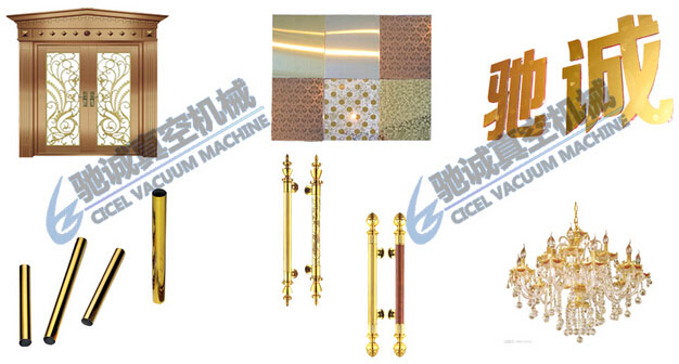 利用馳誠CCZK-ION離子鍍設備可以在金屬,玻璃,陶瓷等材料表面進行鍍膜。普通裝飾鍍膜設備廣泛適用于不銹鋼展架,不銹鋼散件,門花,花灑,把手,水暖五金、鐘表、潔具、餐具、水龍頭、金屬打水機、手機金屬殼、玻璃水晶裝飾品、玻璃管等鍍膜